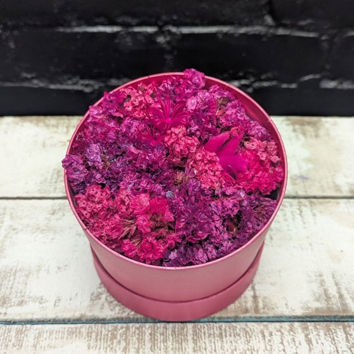The vibrant hues of deep pink and purple create a captivating display that will never fade. This arrangement is a perfect way to add a touch of natural elegance to any room.