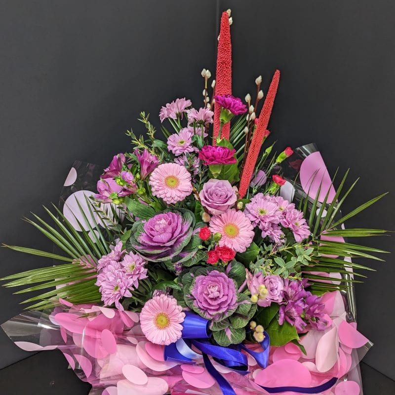 The Front Facing Flower Bouquet is a celebration of vibrant hues and intricate textures, showcasing an array of seasonal flowers expertly arranged to face forward. Ideal for any occasion, this Flower Bouquet brings warmth and elegance to any setting, conveying thoughtful sentiments with style.